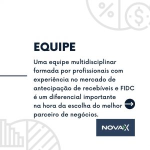 Uma equipe multidisciplinar formada por profissionais com experiência no mercado de antecipação de recebíveis e FIDC é um diferencial importante na hora da escolha do melhor parceiro de negócios.