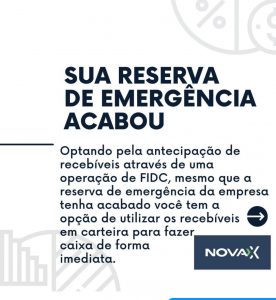 - Porque sua reserva de emergência acabou: optando pela antecipação de recebíveis através de uma operação de FIDC, mesmo que a reserva de emergência da sua empresa tenha acabado, você tem a opção de utilizar os recebíveis em carteira para fazer caixa de forma imediata.
